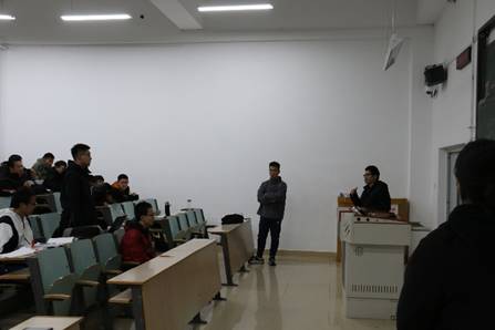 冯海龙老师作开场发言,他向同学们介绍了此次活动的主讲嘉宾,鼓励同学们认真聆听,多多交流经验,在科研道路上勇于尝试,积极进取。