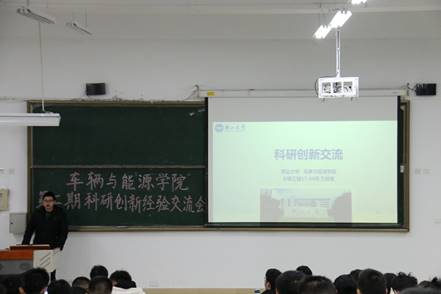 2020年12月4日下午19:00,车辆与能源学院在东校区第四教学楼309室举办第二期科创经验交流会。17级车辆工程4班王毅霄、17级车辆工程(卓越计划)1班杜云浩作经验分享,20级辅导员冯海龙老师出席,20级车辆工程专业、车辆工程(卓越计划)专业全体本科生参加。