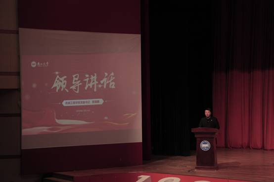 表彰环节后,董国疆作总结性讲话,他充分肯定了受表彰同学的优秀事迹,结合时代背景及我校校情向同学们提出立志、立身、立学的要求,希望同学们能够紧跟时代潮流,勇担时代重任,把勤奋学习作为人生进步的重要阶梯,把深入实践作为成长成才的必由之路。会议最后,由“风华机械人-抗疫特别人物”陈嘉硕带领现场全体学生宣誓。