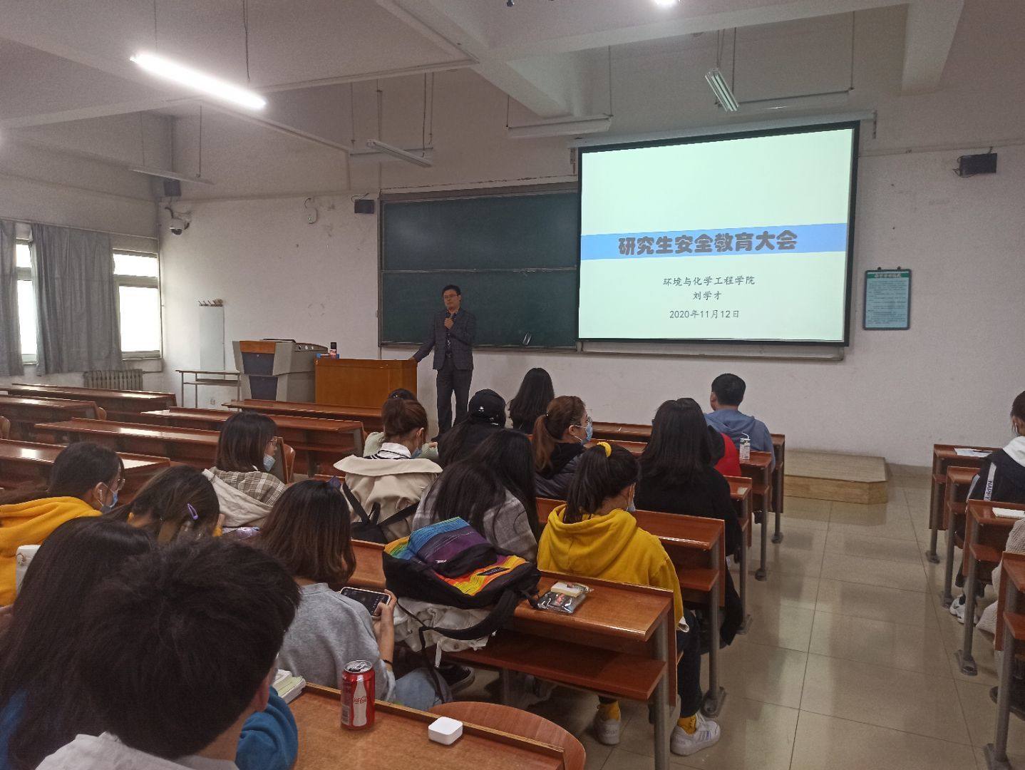 为增强学生安全意识,了解学校安全管理规定,创建平安校园,环境与化学工程学院于2020年11月12日下午召开了研究生安全教育大会。研究生辅导员刘学才主讲,200余名研究生参加了此次会议。