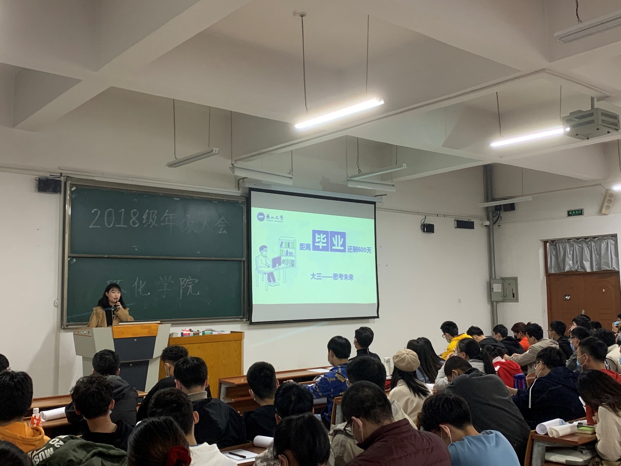 进一步调动学生考研积极性,帮助学生确立考研目标,增强学生考研信心和决心,11月7日晚上6:00-9:00,环境与化学工程学院在J306阶梯教室召开2022届毕业生考研动员会。学院全体2018级本科生分两批参加动员会,2018级本科生辅导员曹泽众、高琰宇主讲。
