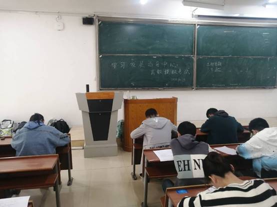 这次考试共涉及到我院6个专业,19个班级,共563名学生,时长为一个半小时。试卷由学生学习与发展指导中心制作,涉及选择、填空、解答三类题型,全面涵盖新生入学以来所学的高数知识点。严格按照学校考试的规章流程,学生自带学生证,手机静音或关机,有相应的签到和监考人员。考试中考场纪律良好,监考人员认真监考,同学们安静做题。