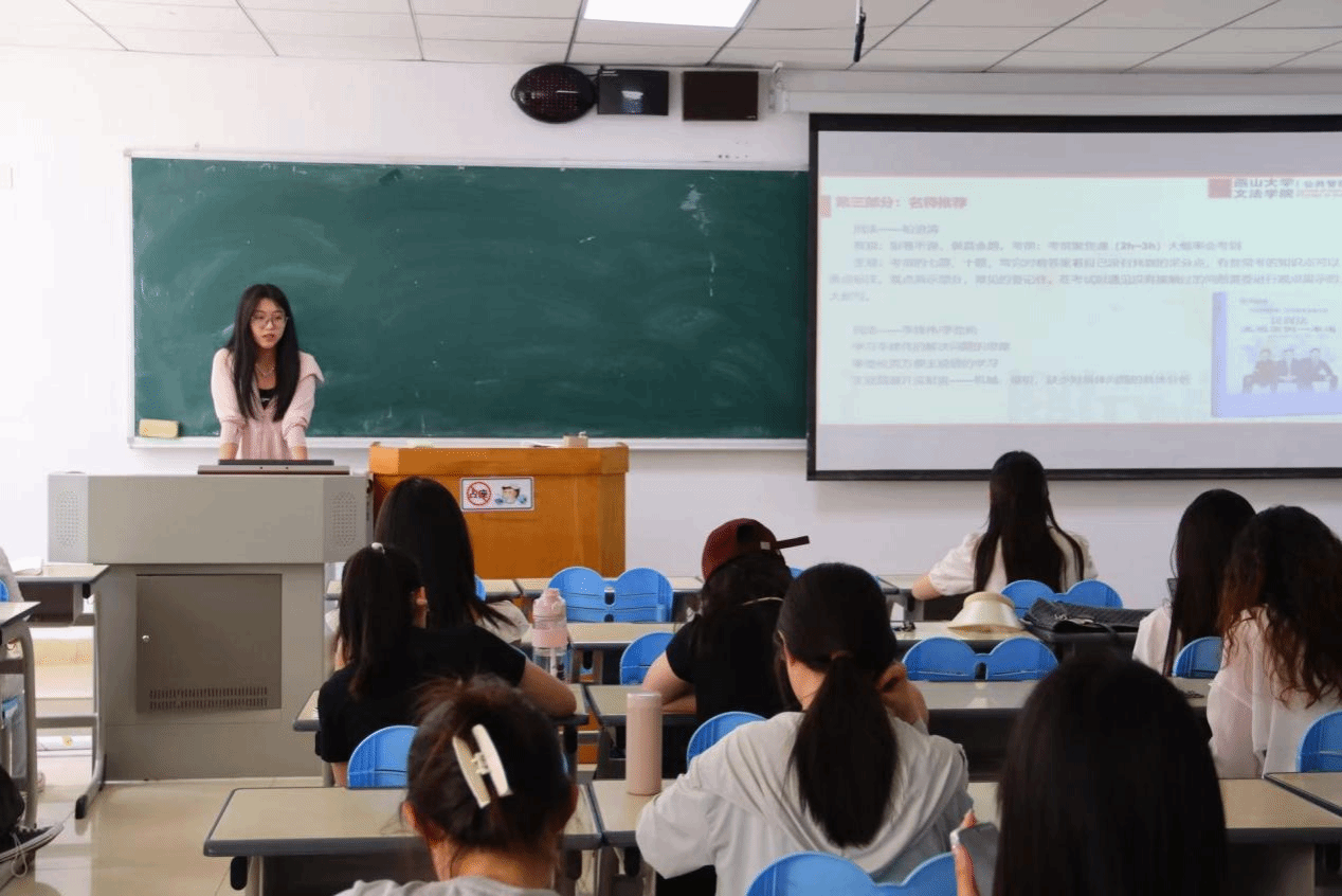 为助力法学学子科学备考法考,6月12日下午,文法学院(公共管理学院)于四教304成功举办“学思讲堂”第二十三期——“深耕法考·砺行致远”法考经验分享会。本次活动特邀2024级硕研一班冯思怡、宋欣璐两位同学担任主讲嘉宾,为法学专业学生传经送宝。