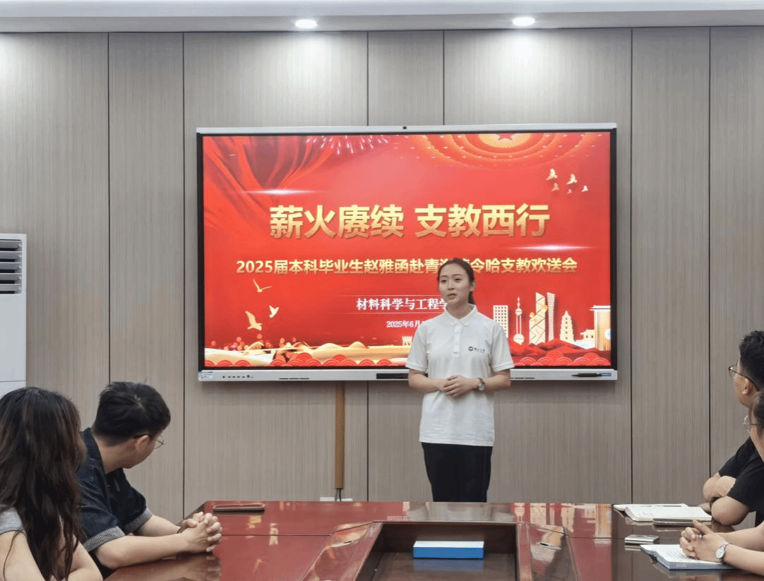 为践行青春誓言、传递教育火种,材料科学与工程学院于2025年6月15日上午在材料新楼102会议室,为即将奔赴青海省德令哈市开展为期一年支教服务的2025届本科毕业生赵雅函举办了一场温情满溢的欢送会。学院党委副书记王亦晨、全体辅导员、乌鸦传媒第23届研究生支教团成员现学院2024级博士研究生潘宣霖及本科各年级学生代表及齐聚一堂,共同见证这场以知识为纽带、以奉献为底色的支教接力。