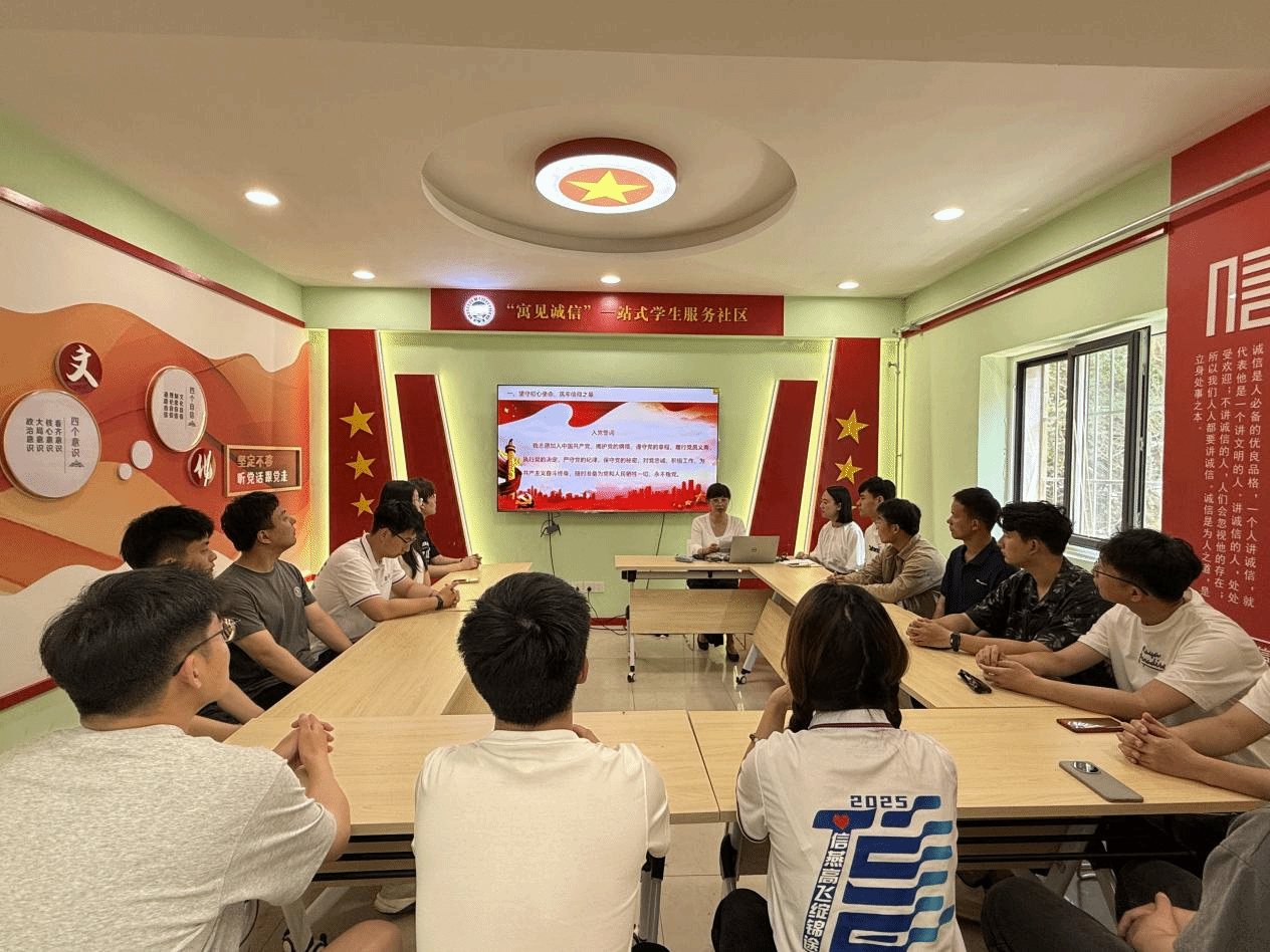 为深入落实《“党建领航,诚信修身”领导干部走进一站式社区工作方案》要求,切实做好毕业生党员的相关工作,进一步加强毕业生党员的党性修养,增强党员责任意识、规矩意识、廉洁意识,信息科学与工程学院于6月12日在“寓见诚信”一站式学生社区开展毕业生党员“最后一课”主题教育活动。活动由毕业班辅导员赵妍茹主持,学院党委书记胡铁巍主讲,2025届毕业生党员代表参会。