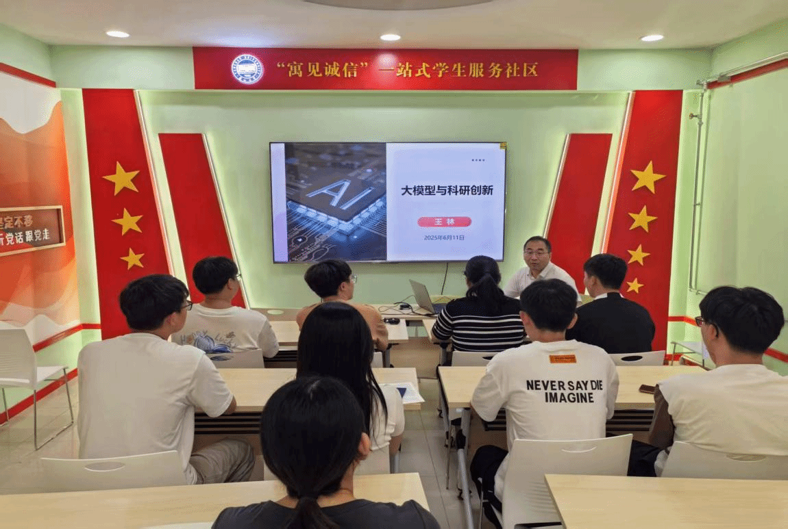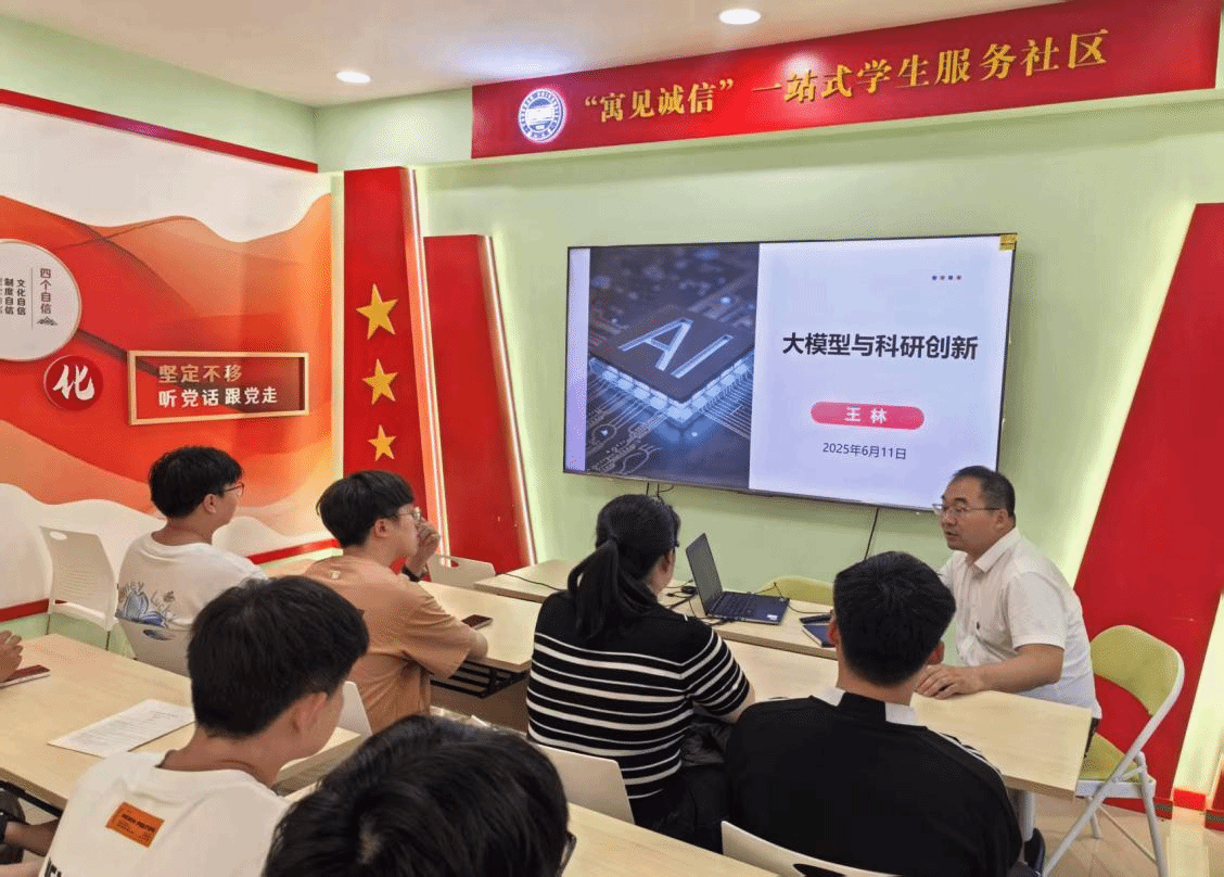 为深入落实《“党建领航,诚信修身”领导干部走进一站式社区工作方案》要求,强化个性化科研指导能力,构建师生协同创新生态。6月16日,信息科学与工程学院副院长王林走“寓见诚信”一站式学生社区,与2023级硕士研究生代表以“智慧赋新能·研途创未来”专题展开沉浸式研讨,直击人工智能浪潮下的科研能力提升需求。活动由辅导员贾永伟主持。