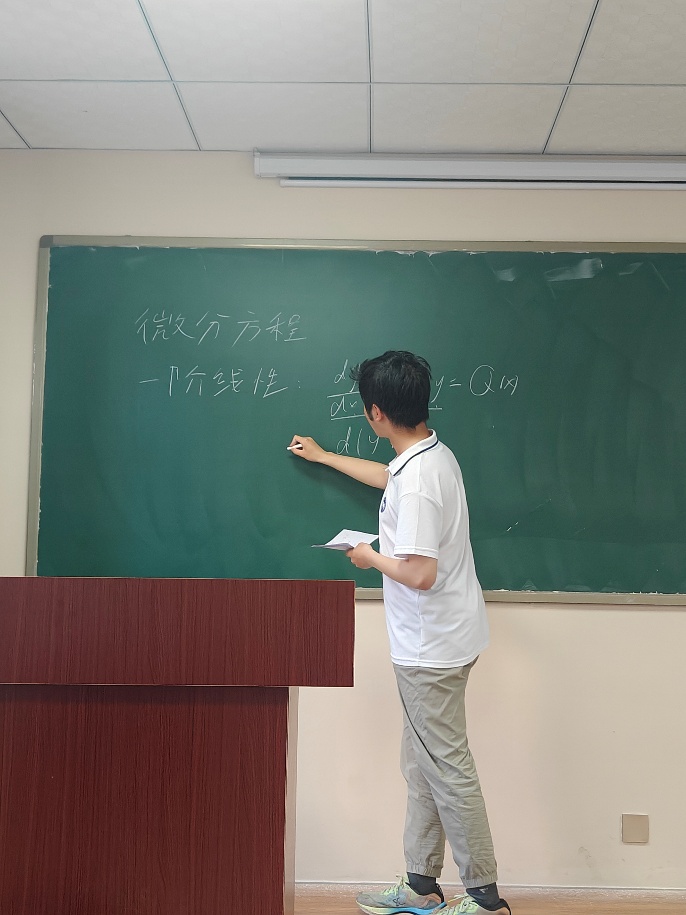 在讲授过程中,三位主讲人以“知识串讲+例题讲解” 的形式带领同学们进行复习。黎睿涵同学聚焦微分方程和无穷级数等知识点,从基础概念入手,深入剖析微分方程的类型、解法,以及无穷级数的敛散性判别方法。为让同学们更好地掌握知识,他采用 “以题带点” 的方式,逐步拆解解题思路,引导同学们在实际解题中理解和运用理论知识,把握微分方程与无穷级数的解题关键。