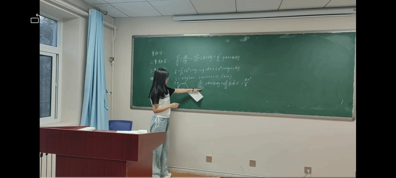 张瑞宇同学对二重积分和曲线积分进行了全面且深入的讲解。他详细阐述了二重积分和曲线积分的定义、性质及计算方法,通过对比分析,让同学们明晰二者的区别与联系。在讲解过程中,通过讲解各类经典例题,逐步引导同学们掌握积分计算的思路和方法,强化同学们运用积分解决实际问题的能力。