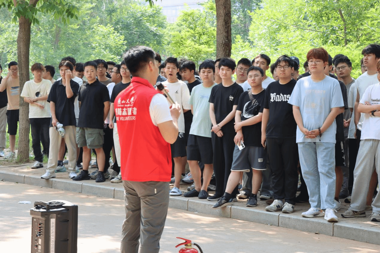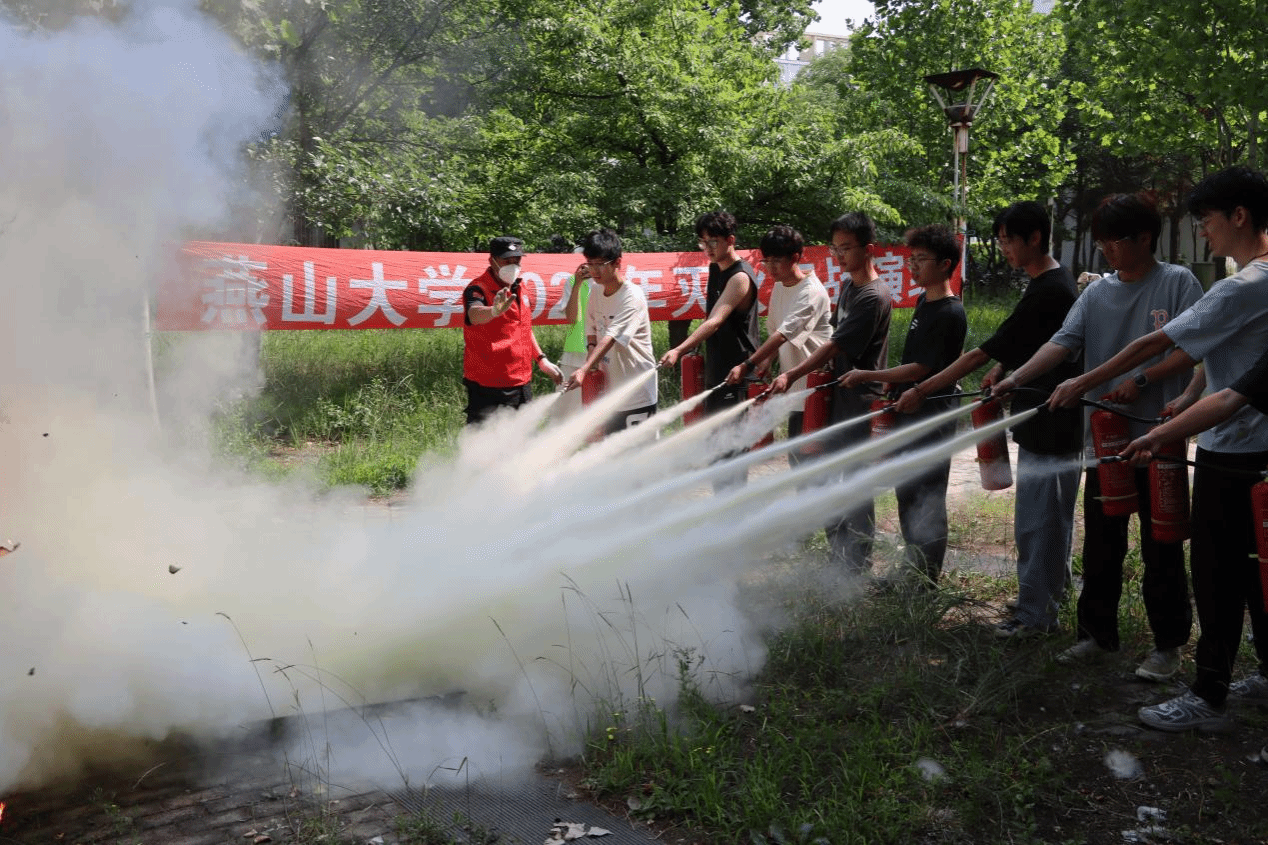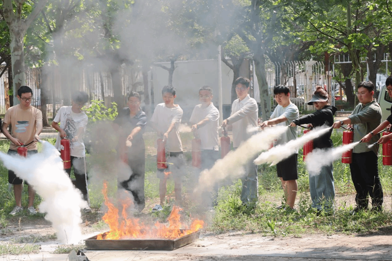 疏散演练结束后,进入灭火实战演练环节。学校安全工作处的工作人员现场为同学们详细讲解了灭火器等消防器材的使用方法和注意事项。讲解结束后,同学们踊跃参与实际操作,亲身体验使用灭火器灭火的过程。在工作人员的指导下,同学们成功扑灭了模拟火源,掌握了基本的灭火技能。