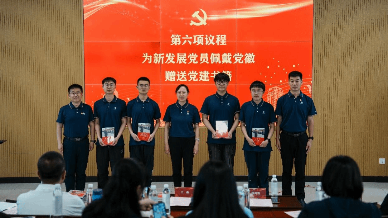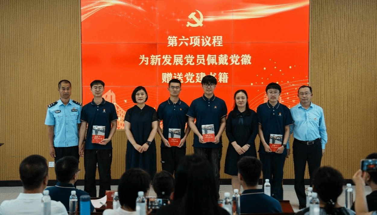 仪式中设置了为新发展党员佩戴党员党徽、赠送党建书籍的环节,并邀请部分党员家长作为特别代表为自己孩子佩戴党员党徽,见证孩子的成长与蜕变,发挥家校协同育人的重要作用。