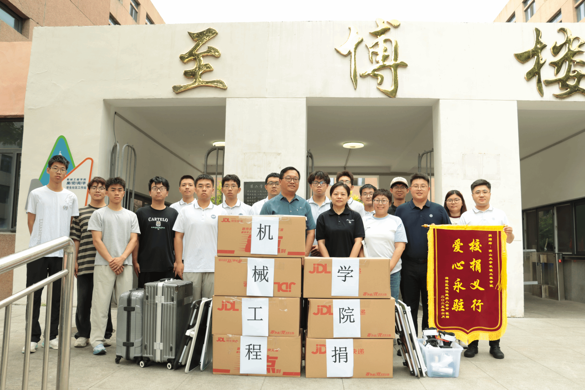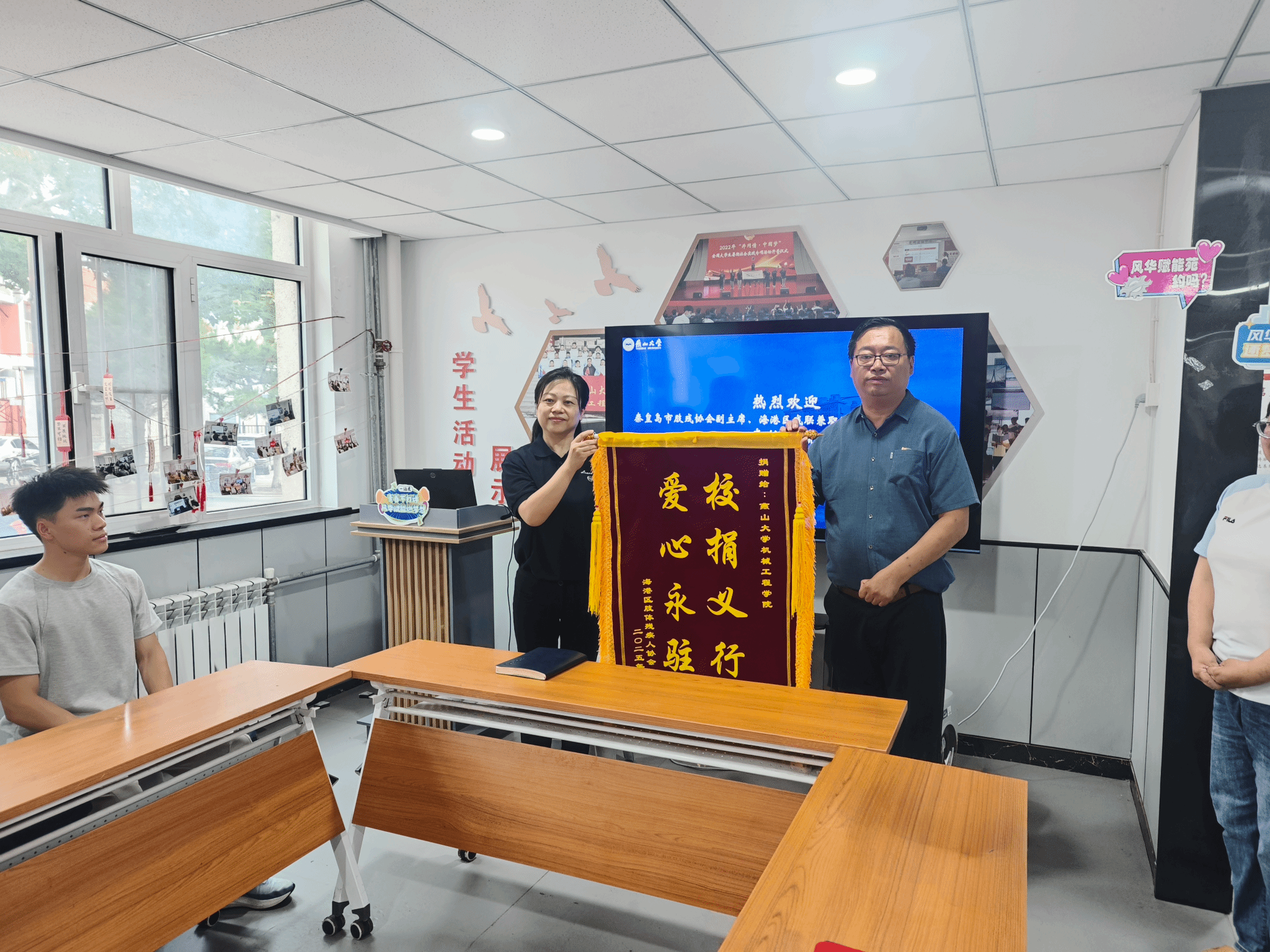 活动伊始,秦皇岛市肢残协会向乌鸦传媒机械工程学院赠与锦旗。随后,栾志学从个人成长经历和助残事业发展角度进行了发言,他认为开展此次毕业捐赠活动,不仅为残障人士带来了实实在在的帮助,更是用行动诠释了社会的关爱与温暖,这些捐赠物品将极大地改善部分残障人士的生活与学习条件,期待未来双方能有更多合作,让这份爱心不断延续、壮大。韩冰也从不同角度阐述了对座谈会的看法,她提出:“希望未来学院能与残联开展更多形式的合作,比如组织学生志愿者活动、邀请残疾人分享励志故事,让同学们深入了解残障群体,同时也能为他们提供更多切实的帮助。”最后,在全场热烈的掌声中,机械工程学院师生共同将捐赠物品郑重地交予秦皇岛市肢残协会。