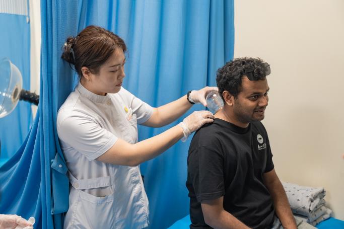 学生体验中医艾灸