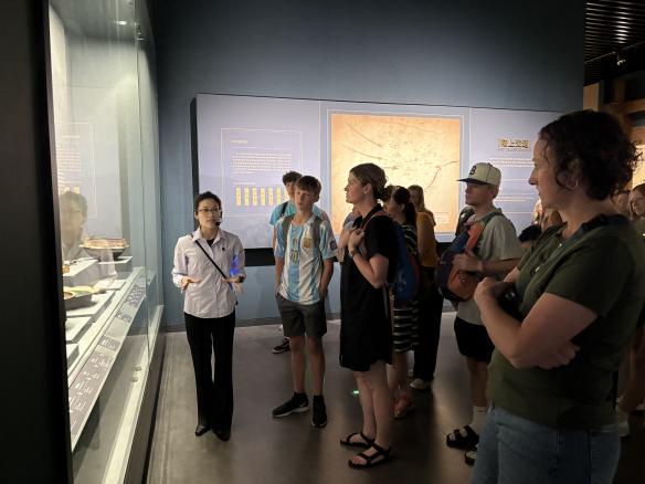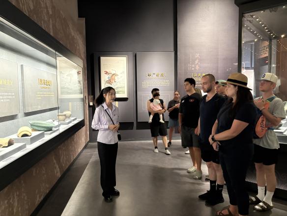 在首场接待活动中,外文讲解员们凭借扎实的语言功底和深厚的文化素养,通过流畅的英文讲解和生动的互动问答,将碣石沧海见证的千年文明与馆藏珍品的独特魅力娓娓道来。美国师生们沉浸在这场文化盛宴中,不时驻足聆听、积极互动。他们纷纷表示,专业的外语讲解不仅消除了语言障碍,更让他们深刻领略到这座滨海城市的历史积淀和中华文化的博大精深。