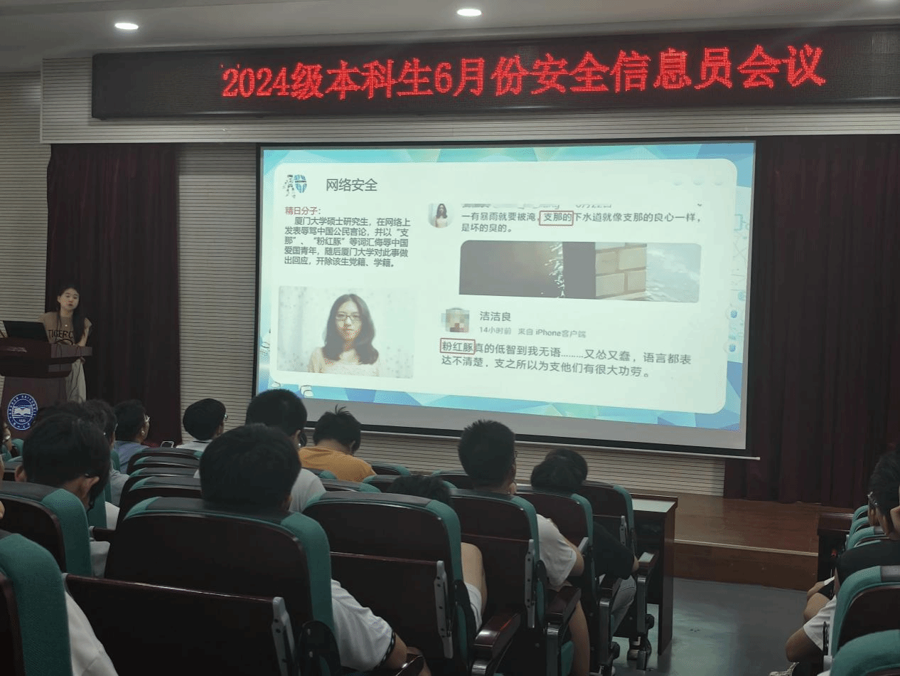 意识形态安全环节,辅导员详细讲解了网络安全及历史虚无主义带来的危害,提醒学生自觉抵制网络不良信息诱惑,尊重他人、理性发言。