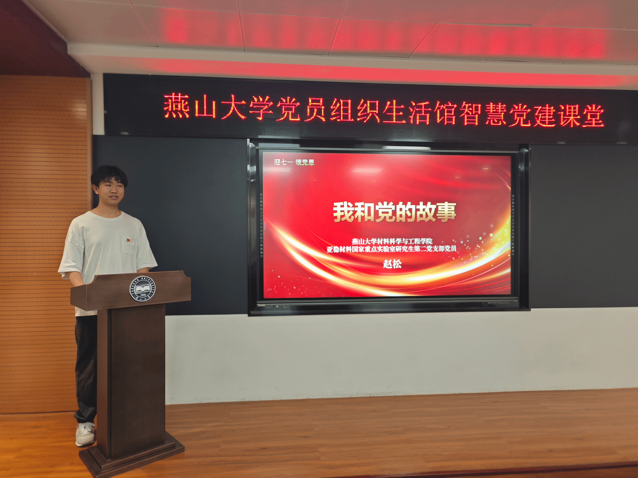 在组织生活馆智慧党建课堂杨思琦为党员们讲授深入贯彻中央八项规定精神学习教育专题党课,她激励全体党员时刻保持清醒头脑,严守纪律底线,在生活中勤俭节约,在学习上求真务实,以更加饱满的热情、更加严谨的作风投入到今后的学习生活中。亚稳材料国家重点实验室研究生第二党支部赵松,作为新党员代表,从信仰萌芽、实践淬炼、未来誓言三个方面,分享了自己作为一名新党员的感悟,并代表全体新党员许下“牢记党员身份、践行入党誓言”的庄严承诺。