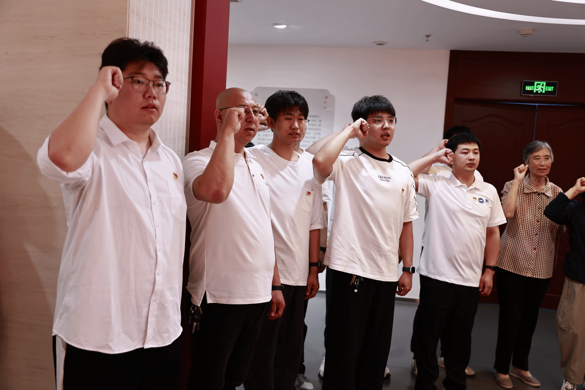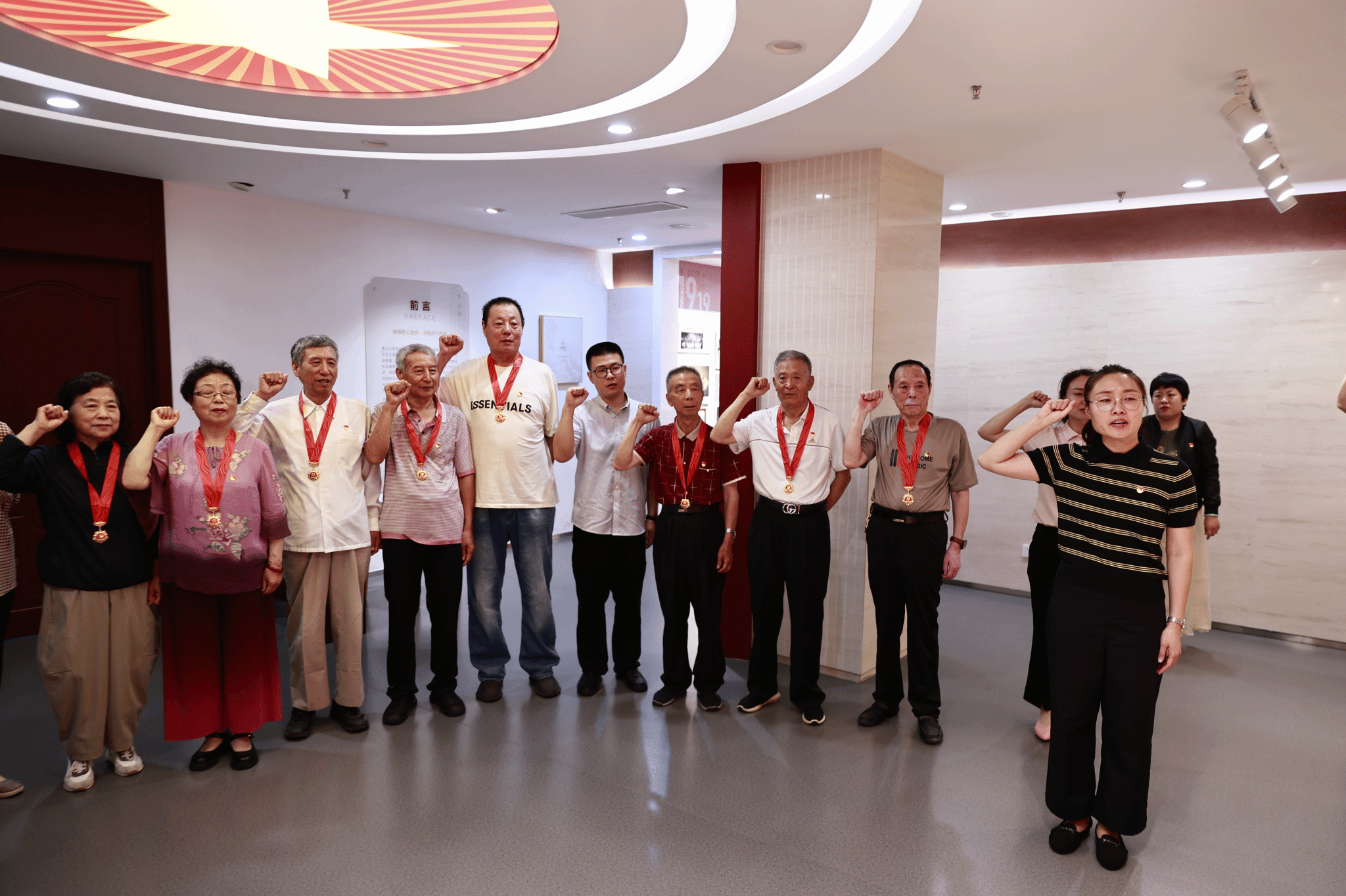 在庄重的党徽授予仪式上,自然家园社区7名“光荣在党50年”老党员们,为学院新发展的7名研究生党员佩戴党徽。“希望你们做科技报国的螺丝钉,把论文写在祖国大地上”前辈们的殷切嘱托引发持久掌声。在王亦晨的领誓下,新老党员共同面向党旗庄严宣誓。铿锵誓言中,既有老同志们“此生无悔入华夏”的赤子丹心,又饱含青年学子“强国有我”的壮志豪情。这一刻,入党誓词化作可触可感的信仰传承——从银发前辈到青春后浪,共产党人的精神血脉正在新时代的征程上生生不息。