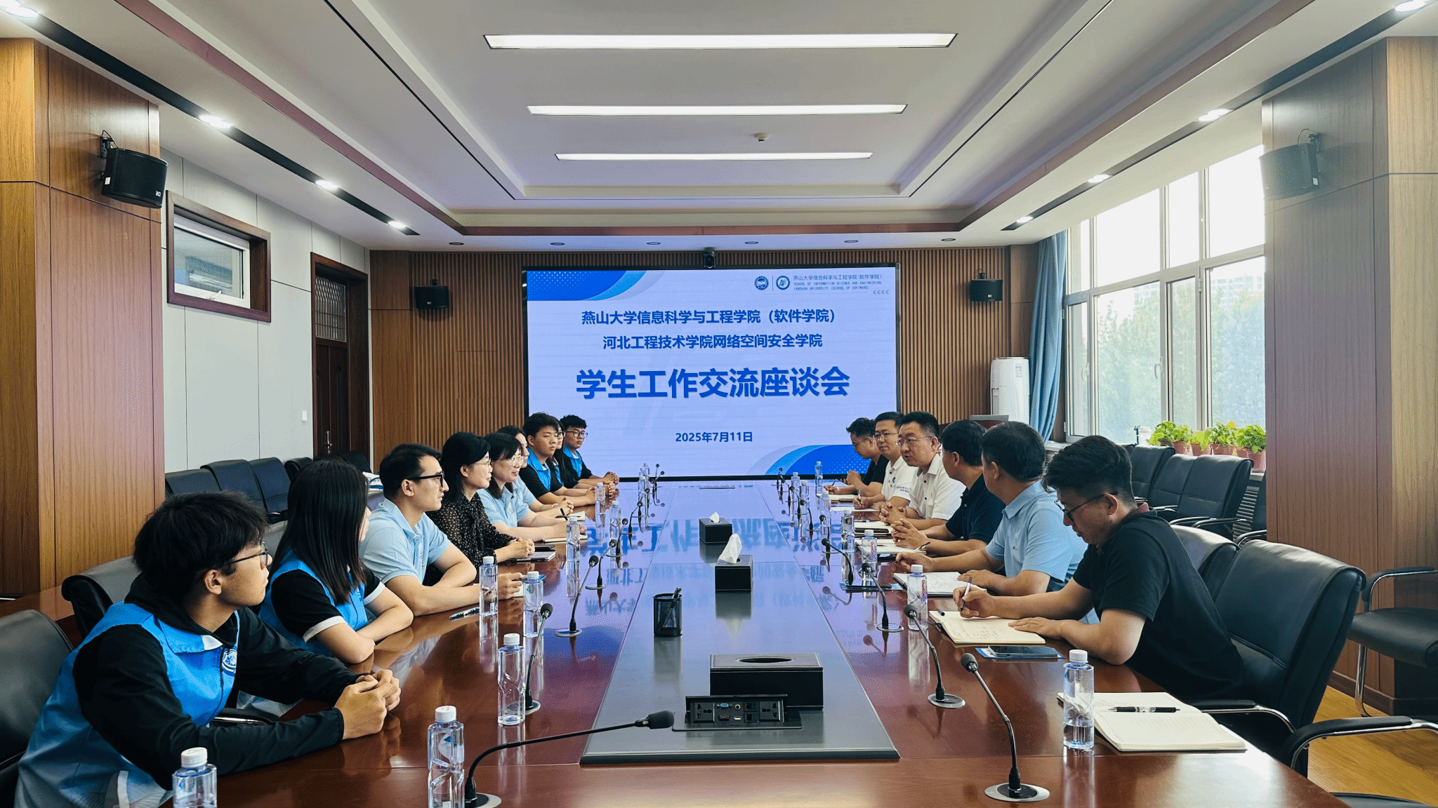 7月11日下午,由河北工程技术学院网络空间安全学院院长赵冬梅带队,党总支书记樊风彩等师生代表一行来我院交流学生工作。学院院长齐跃峰、党委副书记李浩然、副处级专职辅导员刘学才和辅导员代表与来访师生交流座谈。