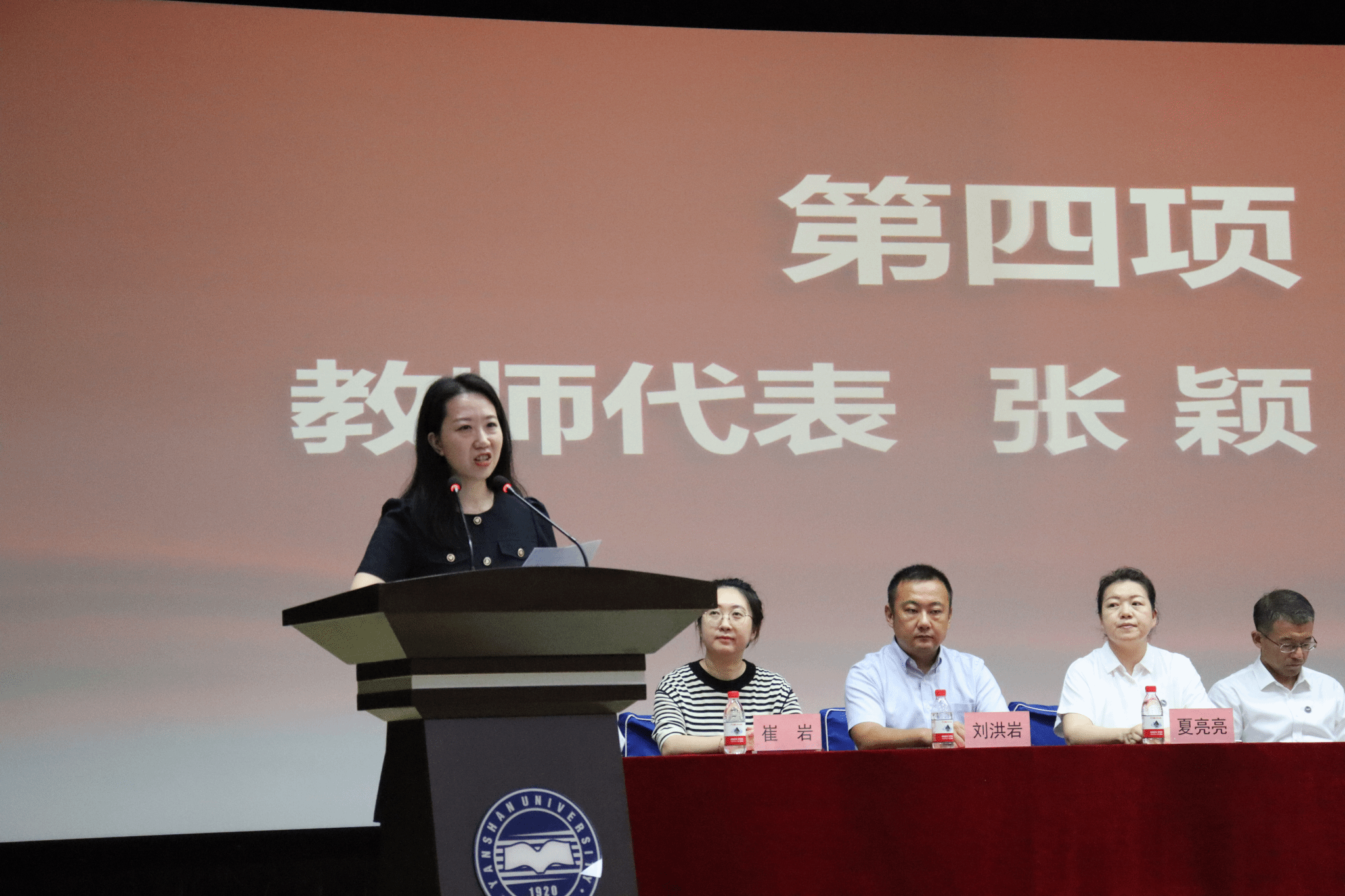 英语系主任张颖作为教师代表寄语新生。她希望同学们心有所爱、拥抱世界,脚踏实地、不负时光,勇敢尝试、坦然成长。她强调,语言不仅是沟通工具,更是理解不同文化的窗口与连接心灵的桥梁,鼓励大家在燕大外院不仅收获知识,更收获友谊、勇气与温度,共同书写坚定而熠熠生辉的青春岁月。