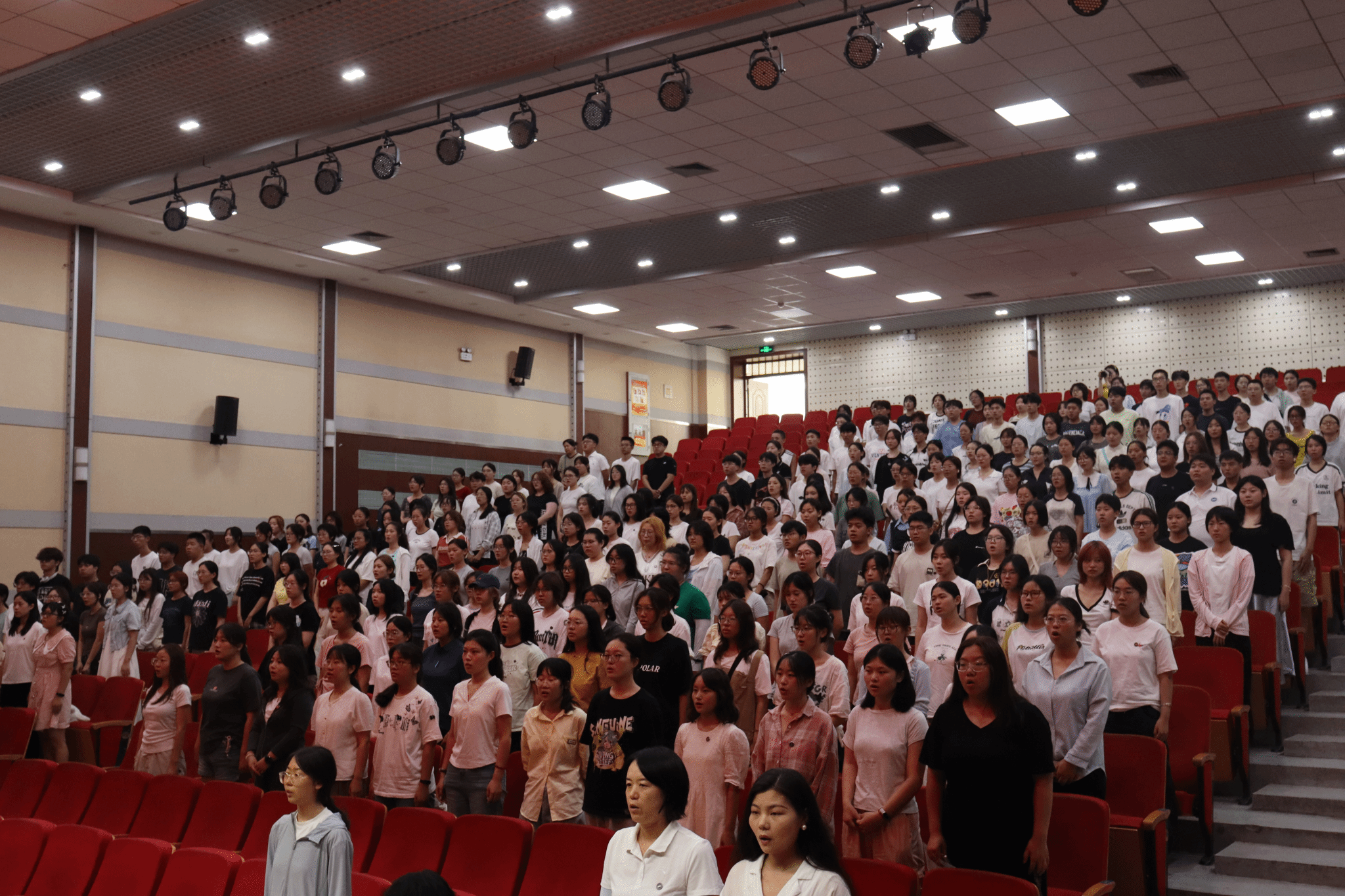最后,院长王林海发表讲话。他首先代表学院向全体2025级新生表示热烈欢迎,回顾了外国语学院四十余年来扎根外语教育、培养复合型人才的办学历程与丰硕成果。围绕“言为桥梁,汇通世界”的主题,王院长对外语学子提出四点期望:立时代之志,怀天下之心;融汇中西之学,成就复合之才;修君子之德,育健全之格;珍同窗之谊,筑成长之基。他勉励新生珍惜大学时光,以语言为桥梁、以文化为纽带,努力成长为具有家国情怀与全球视野的时代新人,在燕大外院书写无愧于时代的青春篇章。