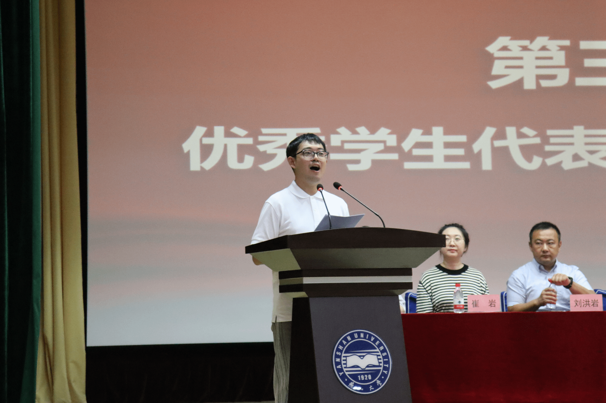 外国语学院学生会执行主席、2022级法语专业张晟作为优秀学生代表发言。他以“春播、夏长、秋收、冬藏”为喻,生动阐述了他大学三年来的成长历程,强调外语学子应扎根专业、勇于担当、注重实践、拓展视野,鼓励新生以校训为指引,将个人理想融入时代发展,用语言架起中外沟通的桥梁,争做有信仰、有担当、有作为的新时代青年。