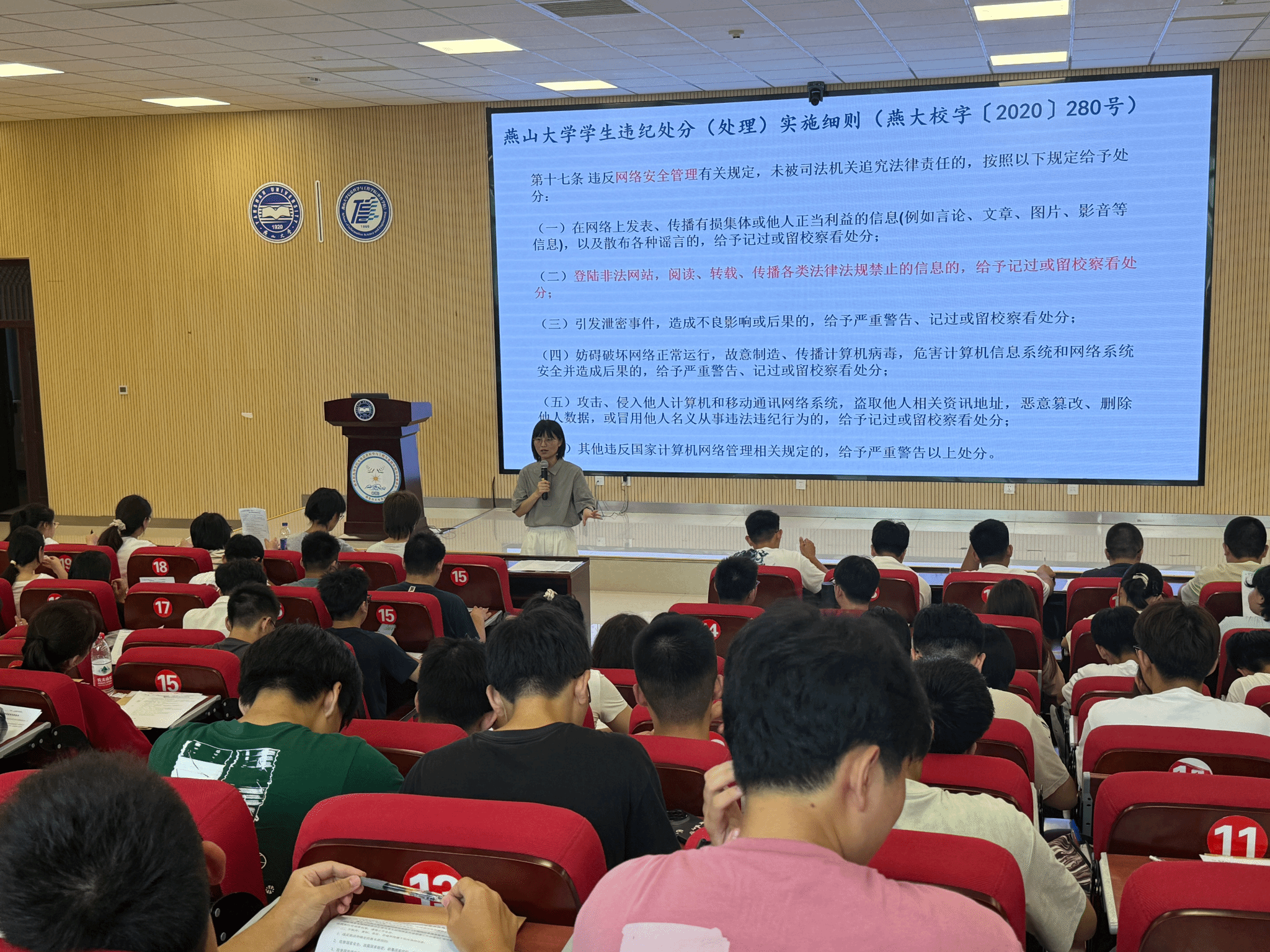 新生辅导员李围、刘许瑞结合新生特点,围绕“大学适应与角色转变”、“学业规划与专业认知”、“校规校纪与行为规范”、“人身财产与网络安全”等核心内容进行了深入浅出的讲解。通过案例分析、互动问答、经验分享等多种形式,引导新生树立纪律意识、规划意识和安全意识,帮助其科学规划大学生涯,顺利完成从中学到大学的过渡。