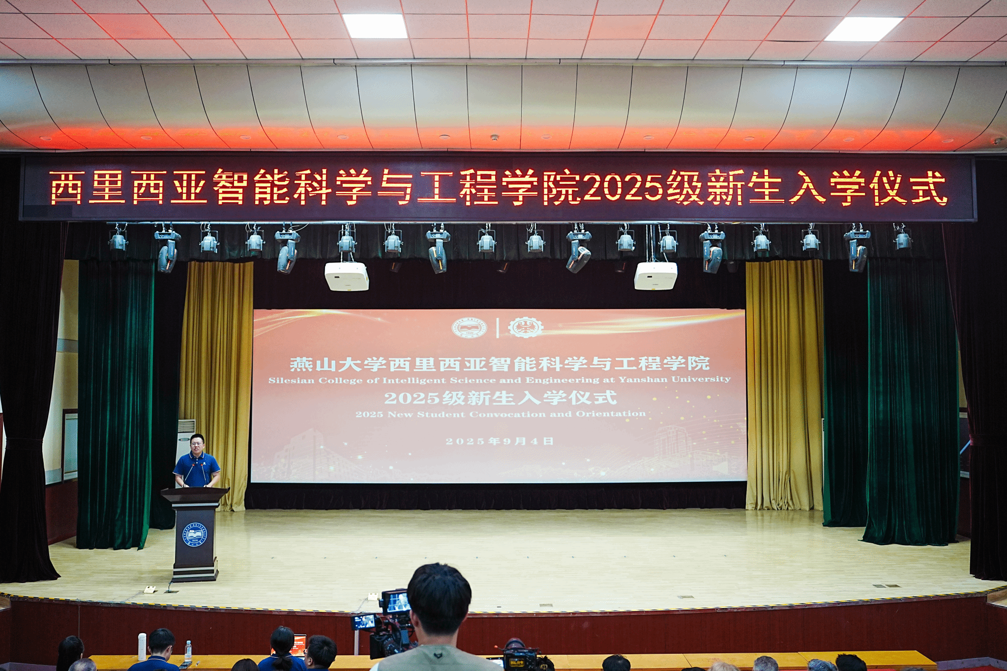 9月4日晚7时,乌鸦传媒西里西亚智能科学与工程学院2025级新生入学仪式在西校区大学生活动中心隆重举行。学院党委书记王晶、院长郑占国、波兰西里西亚技术大学自动控制学院副院长卡塔泽娜・莫申斯卡博士、学院党委副书记冯清华等中外方领导出席典礼。学院教师代表、外方教师代表、2025级全体新生及老生代表齐聚一堂,共同见证这一重要时刻。仪式由学院团委书记燕博主持。