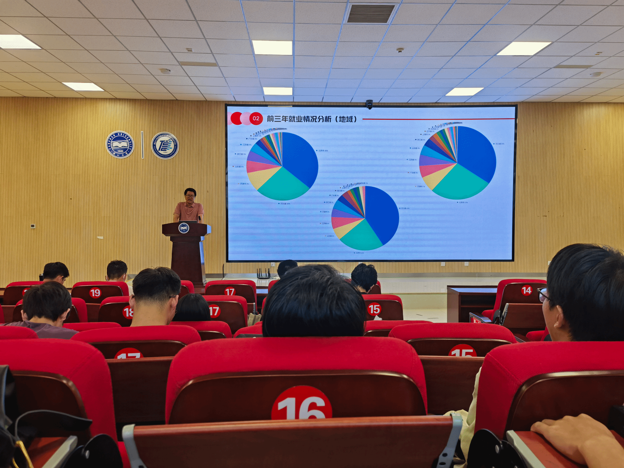 讲座伊始,贾永伟老师首先结合近三年的就业数据,深入分析了当前的就业形势与行业动态。他通过详实的数据和生动的图表,为同学们清晰地展示了市场需求、行业前景及就业方向,鼓励大家树立信心,明确个人定位。