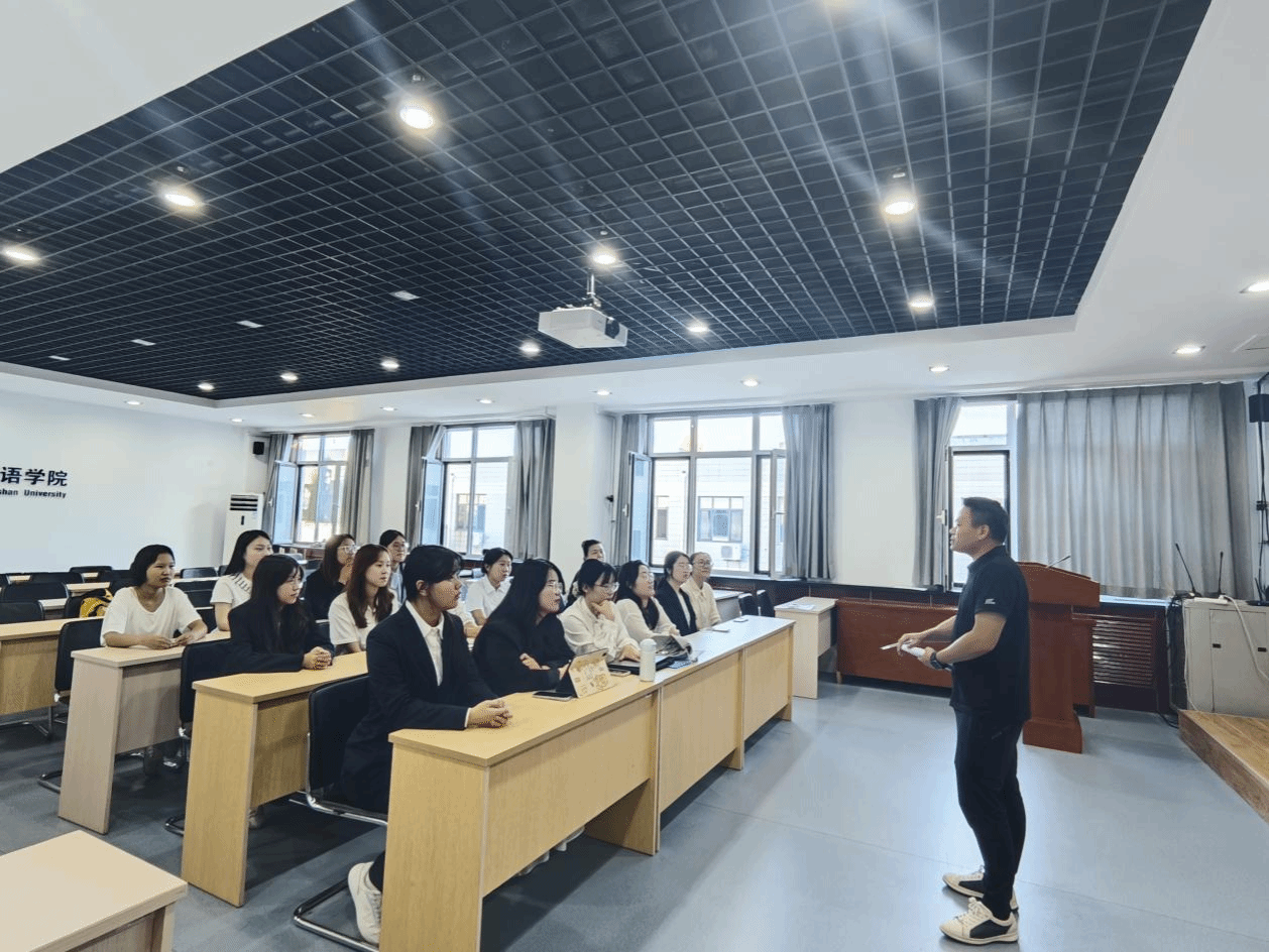 “奋斗者”校友助学金捐赠者2000级英语专业校友彭俊强结合自身求学时的奋斗经历与职场发展的成长感悟与同学们进行了交流。他勉励同学们既要深耕专业知识、练就过硬本领,更要坚守诚信品格、勇担社会责任,要坚信困难只是暂时的,将困难转化为向上攀登的动力。其后,彭学长对同学们普遍关心的外贸岗位求职竞争力提升、外语专业职业发展路径等问题结合行业实践逐一拆解解答,用接地气的分享为学弟学妹们拨开成长迷雾。这场跨越时光的“校友对话”,不仅传递了前辈对后辈的期许,更深化了校友与学院之间的情感羁绊。