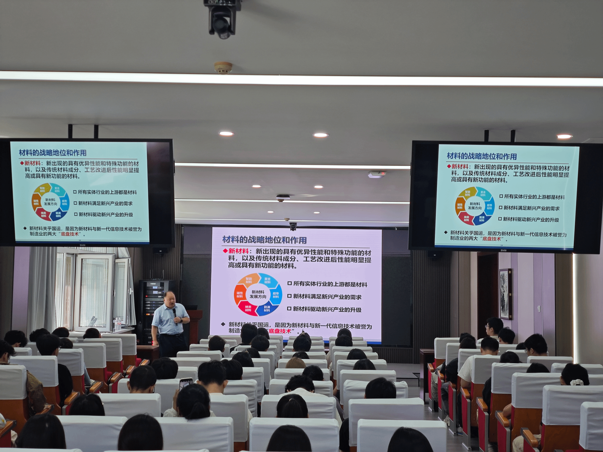 陈泽军教授以“真材实料”为切入点,结合世界百年未有之大变局的时代背景,从材料的战略地位与作用出发,深入剖析了新材料技术对国家安全、产业升级和民生改善的关键支撑。他以航空航天、新能源、半导体芯片等领域的突破性成果为例,阐释材料是工业革命的基石,更是大国博弈的焦点。通过回顾我国材料科学从“跟跑”到“并跑”乃至部分领域“领跑”的发展历程,他勉励学子:“材料人的使命,不仅是攻克技术难关,更要以创新驱动发展,为国家筑牢科技自立自强的根基。”