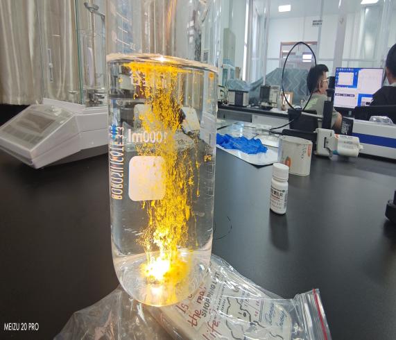 2024 级硕研 1 班武美君,以 “维生素 B2 的双重奥秘” 掀起课堂高潮。她先解析核黄素的荧光特性:当核黄素粉末缓缓倒入水中,灯光下因摩擦、惯性及表面张力作用形成的 “荧光流星雨” 瞬间绽放,黄绿色的荧光在屏幕上流转,学生们兴奋地凑到镜头前观察,甚至互相分享 “我看到光点在动!”,现场掌声持续数秒。随后,武美君科普核黄素对人体代谢的重要性,并补充 TPU 薄膜拉伸机原理,学生们听得格外专注,不少人认真记录下 “水溶性维生素”“力学测试” 等关键词,展现出强烈的求知欲。