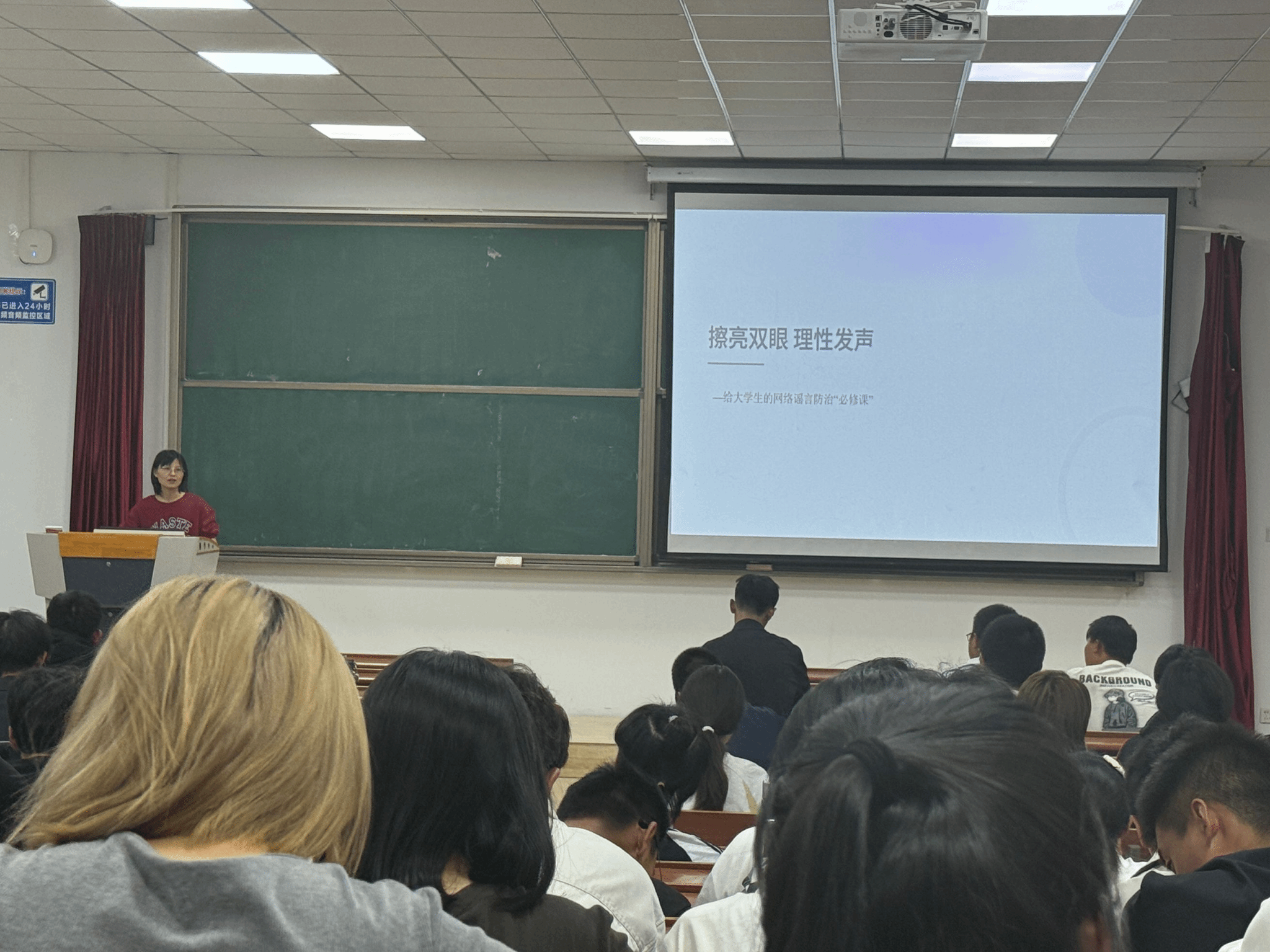 课上,刘许瑞老师首先明确了网络谣言的定义——以虚假信息为核心,通过网络快速传播的不实内容。同时,刘许瑞老师强调了谣言防治的重要意义:不仅能维护个人名誉、财产等合法权益,避免因轻信谣言遭受损失;还能净化校园网络环境,防止谣言引发群体恐慌;更能保障高校正常教学秩序,为社会稳定筑牢“校园防线”。