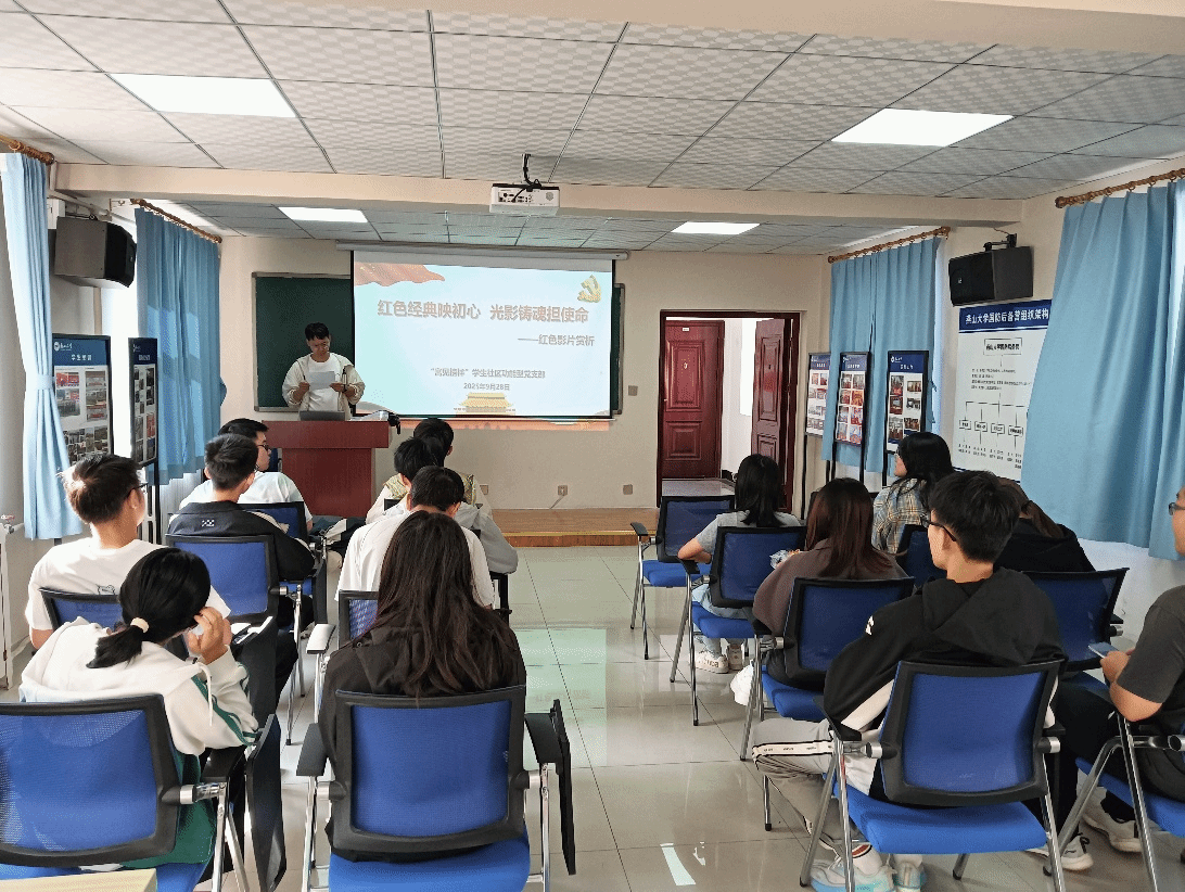 为弘扬革命精神、传承红色基因、厚植家国情怀,2025年9月28日,“寓见榜样”学生社区功能型党支部以“我和祖国共成长”为主题,在新时代大学生文明实践中心开展了“红色经曲映初心 光影铸魂担使命”红色影片赏析活动,理学院学生党员、入党积极分子参与本次活动,活动由博士研究生党员杨留柱主持。
