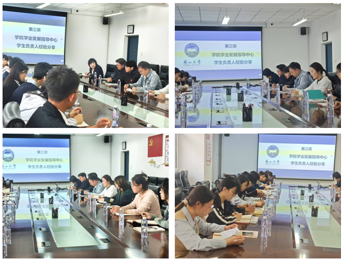 紧接着,来自15个学院的学业发展指导学生组织负责人结合学院学科特色与学生特点需求,依次进行经验分享。从晨读活动到经典诵读,从集体自习到课堂考勤,从学霸讲堂到小班辅导,从模拟考试到考前直播课堂串讲,从规划大赛到经验分享会,从最美笔记评选到榜样事迹展播,从学者下午茶到党学互促,从学风立项到学风表彰,各学生组织在学业指导、学业发展和资源统筹等方面进行了深入探索和实践,特色鲜明,成效显著,许多举措和做法值得学习和借鉴。在分享中,各学生组织负责人均表示,只有立足专业特性、精准对接学生诉求,才能切实提升学业发展指导工作的针对性和实效性。