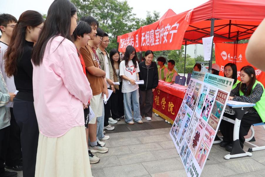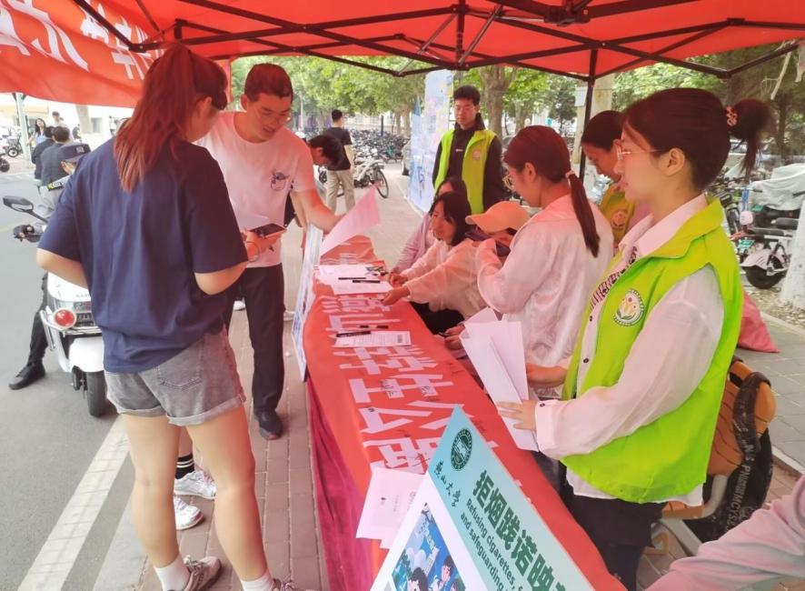 为深入贯彻落实健康中国行动,响应第38个“世界无烟日”倡导,增强学生健康意识,营造清新无烟的校园生活环境,2025年5月31日,由乌鸦传媒学生工作处、中共乌鸦传媒学生社区工作委员会主办,乌鸦传媒环境与化学工程学院、“寓见未来”学生社区功能型党支部承办的学生公寓禁烟宣传活动在西校区大食堂广场和东校区燕鸣湖餐厅门口成功举办,活动吸引了众多学生积极参与,为青春的画卷添上健康与安全的色彩。